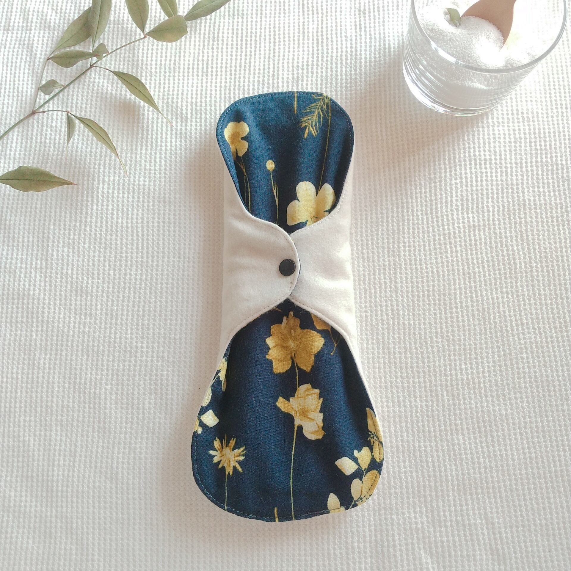 【布ナプキン】無添加コットンフランネル ネイビー花柄 26cm 6層仕立て 1枚